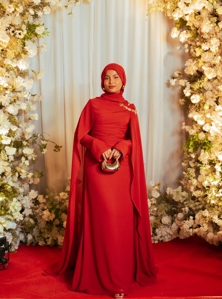 އިންފްލުއެންސާ، ޒަހާ ރެޑް ކާޕެޓް އިވެންޓުގައި ބައިވެރިވަނީ: ރަތް ކުލައިގެ އެ ހެދުމަކީ އަލްމީރާގެ ޑިޒައިނެއް-- ފޮޓޯ: ކްރިއޭޓިވް ނެޓްވޯކް